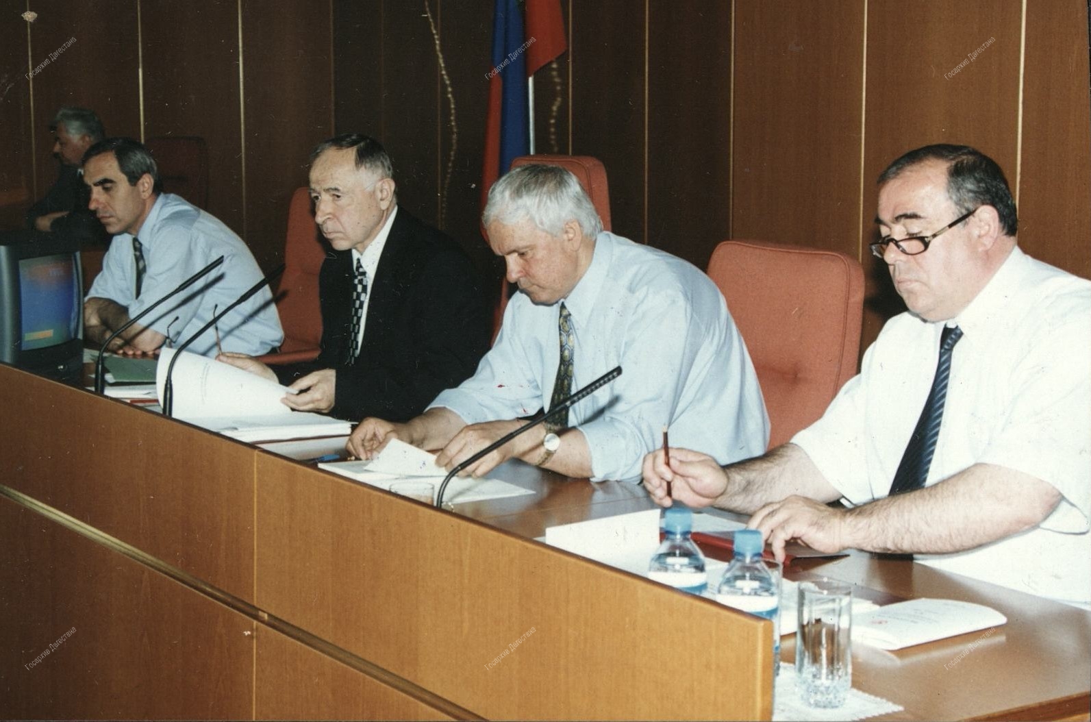 Заседание Народного собрания РД. слева направо: Каммаев Арсен Омарович - заместитель председателя Народного собрания, Алиев Муху Гимбатович -председатель Народного собрания, Алчиев Николай Юрьевич - заместитель председателя народного собрания, Гайдаров Насир Алиевич - заместитель Народного собрания.