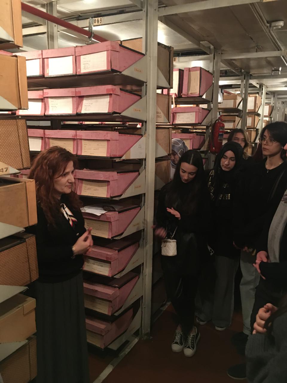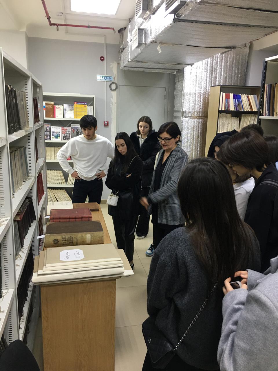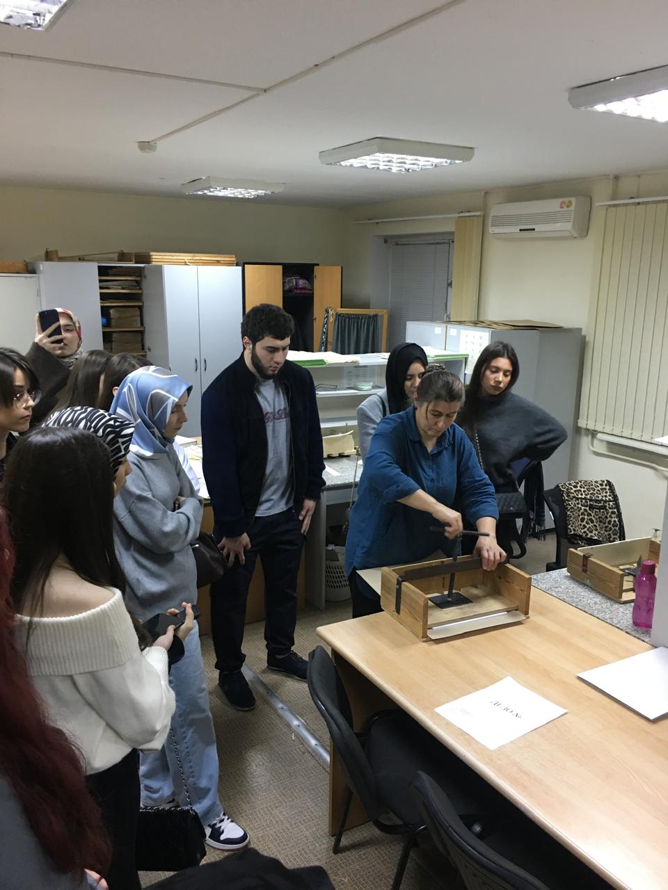 После для студентов была проведена экскурсия по архиву - хранилищу документов, отражающих историю и развитие нашей республики за разные годы. Ребята посетили научно-справочную библиотеку, читальные залы, современные архивохранилища, лабораторию по реставрации и переплету, наблюдали за созданием страхового фонда и электронного фонда пользования архивных документов.