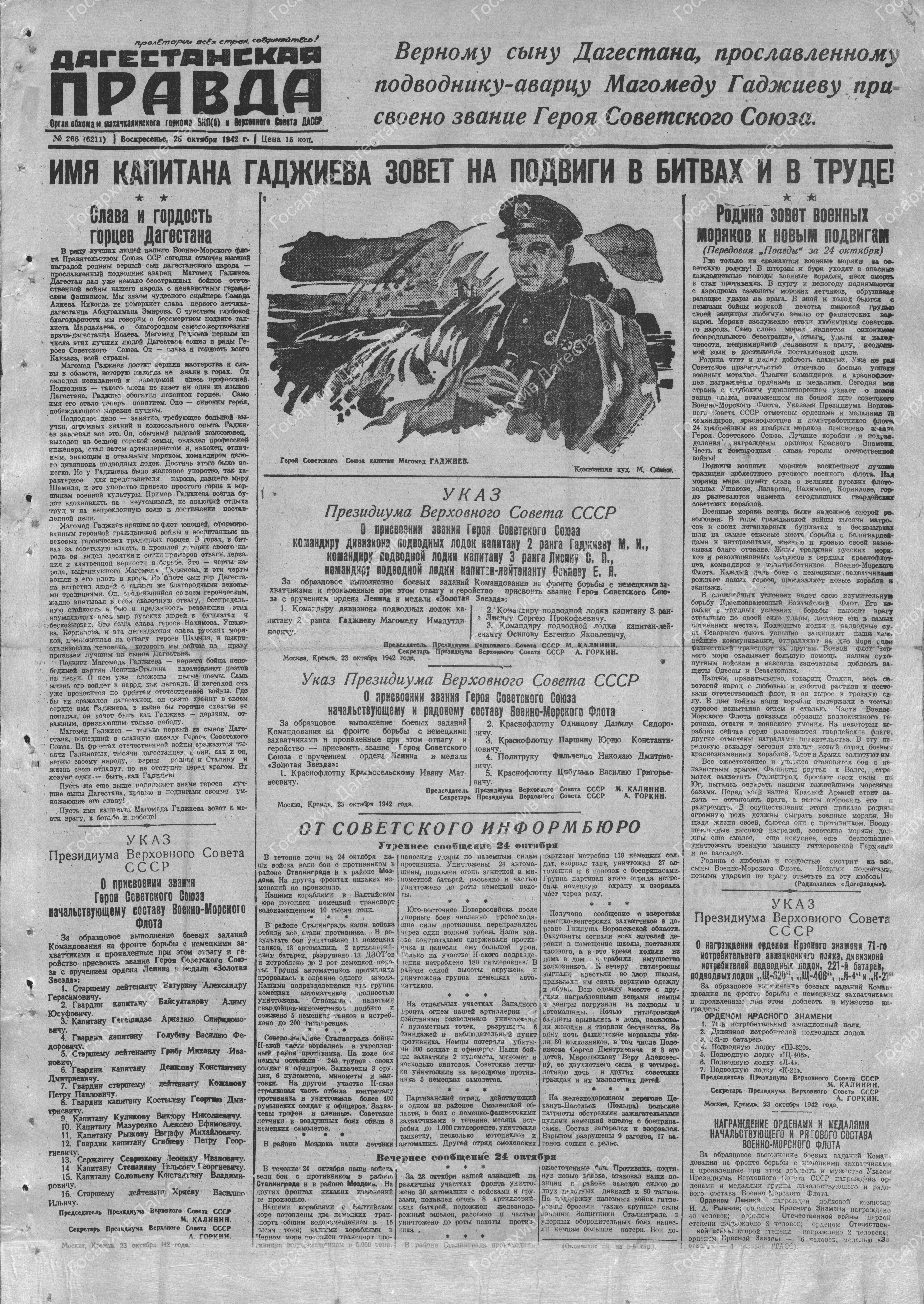 газета Дагестанская правда №266 от 25.10.1942г.
